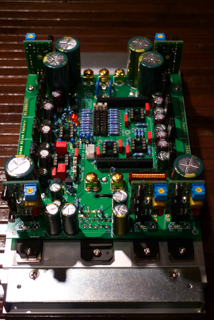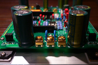 コンデンサーは小型の超高性能品 WXの50V330uFを34本載せました。
