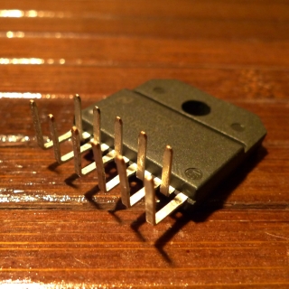 ICのピンをこんなふうに加工して基板の裏から取り付けます。