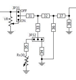 素子3xはパッシブフィルターを構成します。Rx30は時定数微調整回路用です。 JP32で切り替えて使用します。