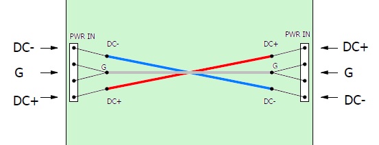 PWR IN には正負の直流を入力します。非安定直流でも安定化直流でもどちらでも構いません。