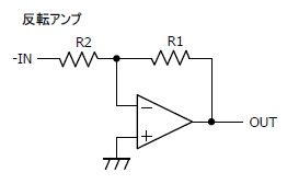 −INから入力された信号を増幅して逆極性でOUTから出力します。