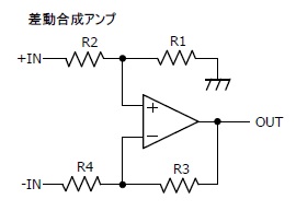 差動合成アンプと同様に、+INと−INのふたつの入力信号の電位差を増幅率倍した信号が出力されることに注意しましょう。